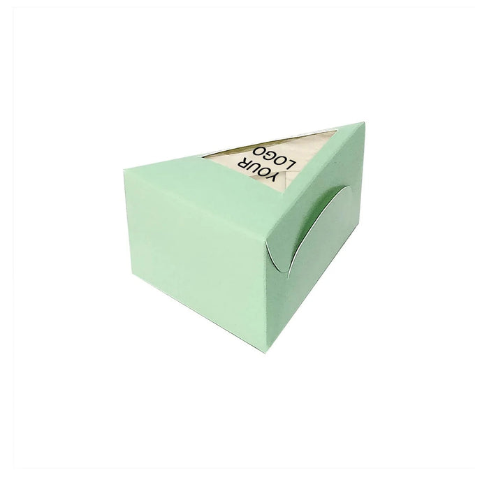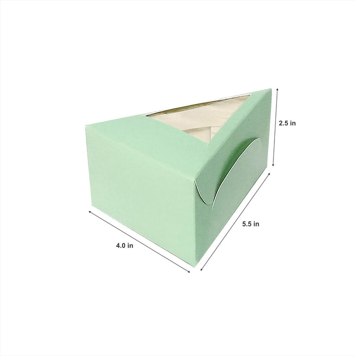 This Cake Slice Box is the perfect way to securely store and transport a triangle cake or cheesecake slice. Made from high-quality mint materials, the box measures 5.5" X 4.0" X 2.5" and ensures safe transport and storage of your slice.