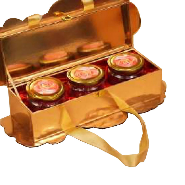 Material : MDF Wooden Box + Printed Paper + Lamination Skodesk Foil + Lock + Satin Cloth Accessories : 3 Jars (300ml)