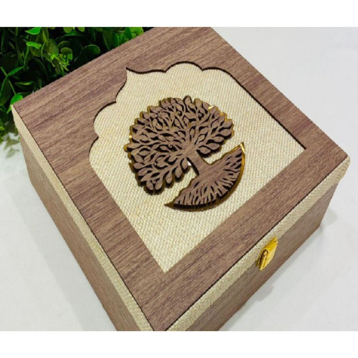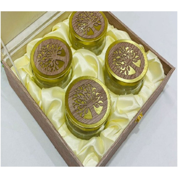 Material: Mdf Wooden Box + Lock + Inside Satin Cloth Accessories: 4 Jar