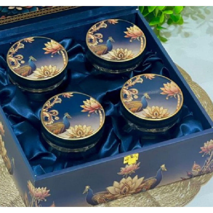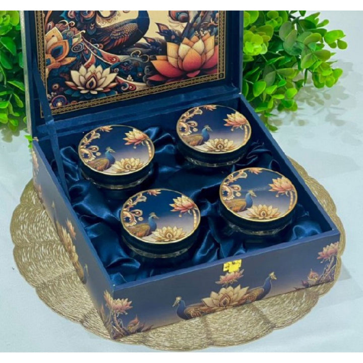 Material: Mdf Wooden Box + Printed Paper + Lamination + Lock + Inside Satin Cloth Accessories: 4 Jar