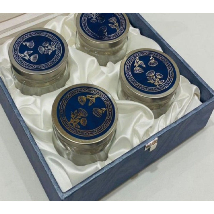 Material: Mdf Wooden Box + Velvet Pasting + Lock + Inside Satin Cloth Accessories: 4 Jar